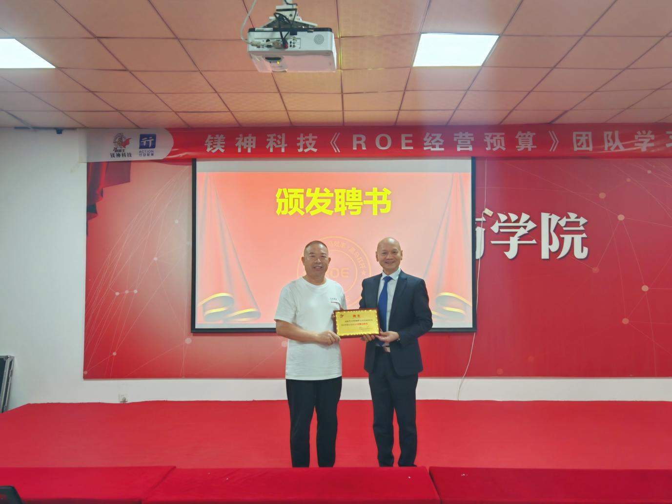 本次培訓特邀企業(yè)經營預算領域實戰(zhàn)專家付小平老師擔任主講,付老師擁有十余年大型企業(yè)預算體系搭建經驗,更是ROE預算系統(tǒng)的創(chuàng)始人。他深耕企業(yè)實踐、扎根一線經營,讓其課程兼具理論高度與實踐溫度,憑借“復雜理論通俗化、實操方法工具化”的授課風格,付老師的課程在業(yè)界廣受好評。董事長兼總裁孫文為付老師頒發(fā)“ROE預算總教練”聘書。