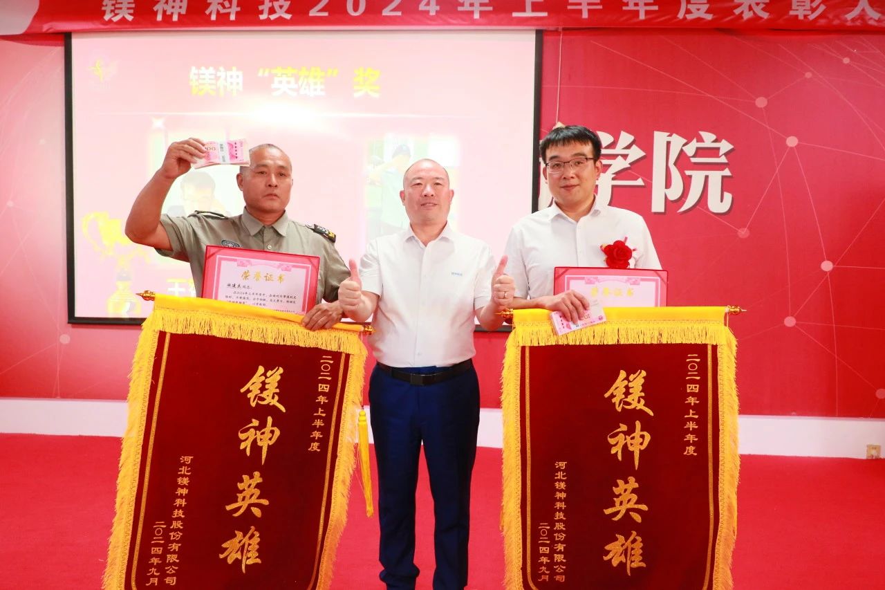 04鎂神“英雄獎(jiǎng)”樹(shù)立榜樣、宣傳榜樣、學(xué)習(xí)榜樣。鎂神需要這樣的“英雄”榜樣,鎂神不會(huì)讓“英雄”吃虧。讓我們?yōu)樗麄兊恼芰奎c(diǎn)贊!本次表彰大會(huì)中,特別設(shè)置了“鎂神英雄獎(jiǎng)”,授予在公司關(guān)鍵時(shí)刻挺身而出、做出特殊貢獻(xiàn)的員工——王贊旺、施建立!
