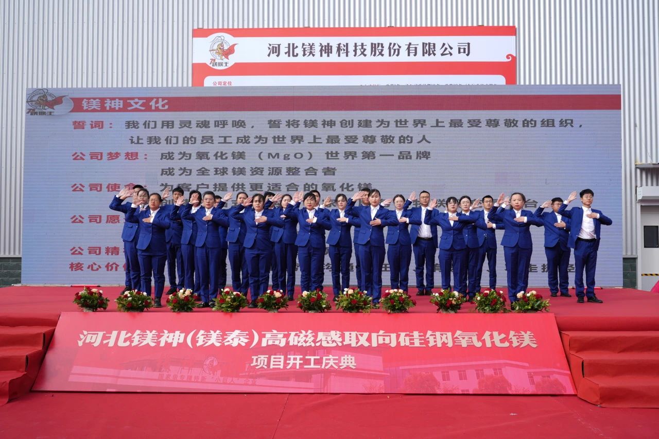2024年10月19日,河北鎂神科技股份有限公司(以下簡稱“鎂神科技”)在廣宗工廠隆重舉行“河北鎂神(鎂泰)高磁感取向硅鋼氧化鎂項(xiàng)目開工儀式”,并于當(dāng)天下午舉辦了技術(shù)交流會(huì)。此次活動(dòng)匯聚了來自政府、行業(yè)協(xié)會(huì)、科研機(jī)構(gòu)及企業(yè)的眾多領(lǐng)導(dǎo)、專家和合作伙伴的熱情參與,共同見證中國硅鋼級(jí)氧化鎂歷史上一里程碑時(shí)刻。