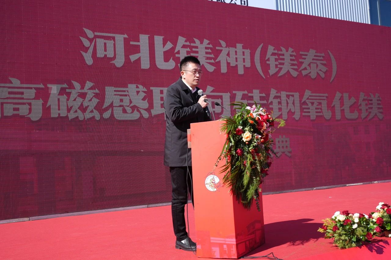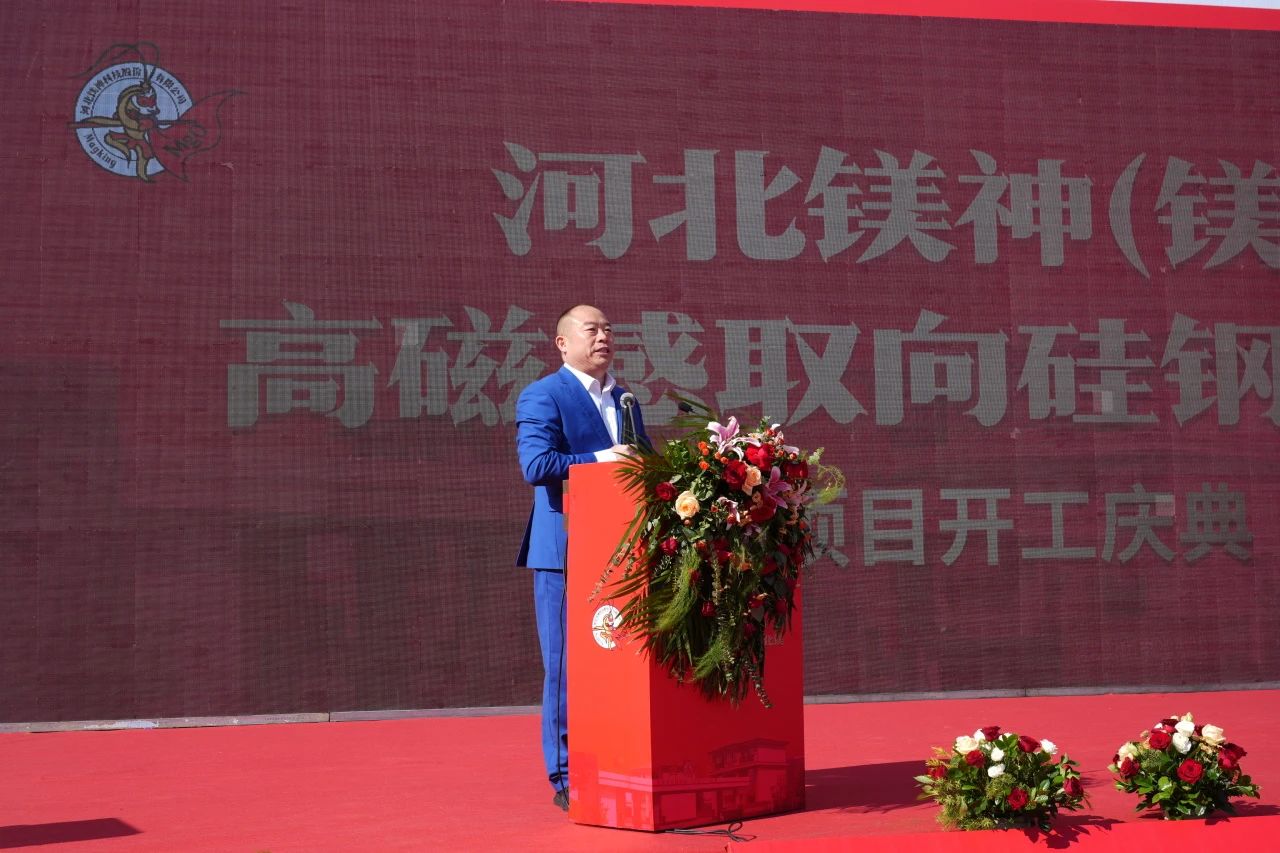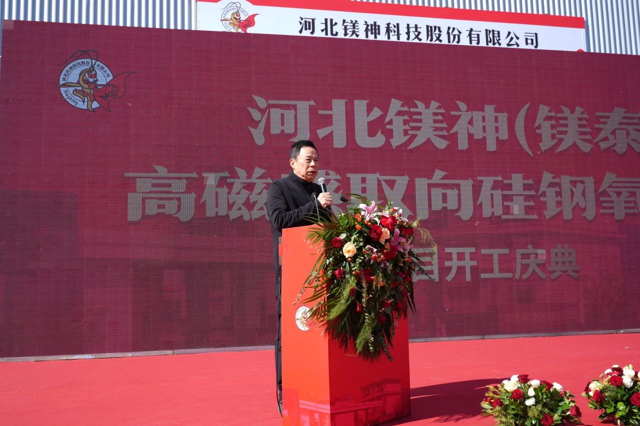 孫文董事長首先對遠(yuǎn)道而來的各位領(lǐng)導(dǎo)、專家、合作伙伴和朋友們表示由衷的感謝。他提到,這一項(xiàng)目的順利啟動(dòng),離不開社會(huì)各界長期以來對鎂神科技的支持與厚愛。在致辭中,他回顧了公司21年來通過專注于氧化鎂行業(yè)的深耕與應(yīng)用研發(fā),從傳統(tǒng)氧化鎂產(chǎn)品逐步向高端化、精細(xì)化轉(zhuǎn)型升級(jí)的發(fā)展歷程。并分享了自己站在中國鎂鹽行業(yè)的前沿對硅鋼氧化鎂的見解。最后,孫文董事長再次對與會(huì)嘉賓的支持表示感謝!并堅(jiān)信在鎂神的戰(zhàn)友們共同努力下,未來10年一定能實(shí)現(xiàn)世界級(jí)鎂質(zhì)新材料定制專家,世界級(jí)應(yīng)用研發(fā)領(lǐng)跑者,全球鎂資源整合者,世界級(jí)隱形冠軍締造者的戰(zhàn)略目標(biāo)。為中國一帶一路添彩,為中國制造爭光,為民族復(fù)興增磚添瓦,為中國鎂行業(yè)發(fā)展貢獻(xiàn)我們的一份力量。